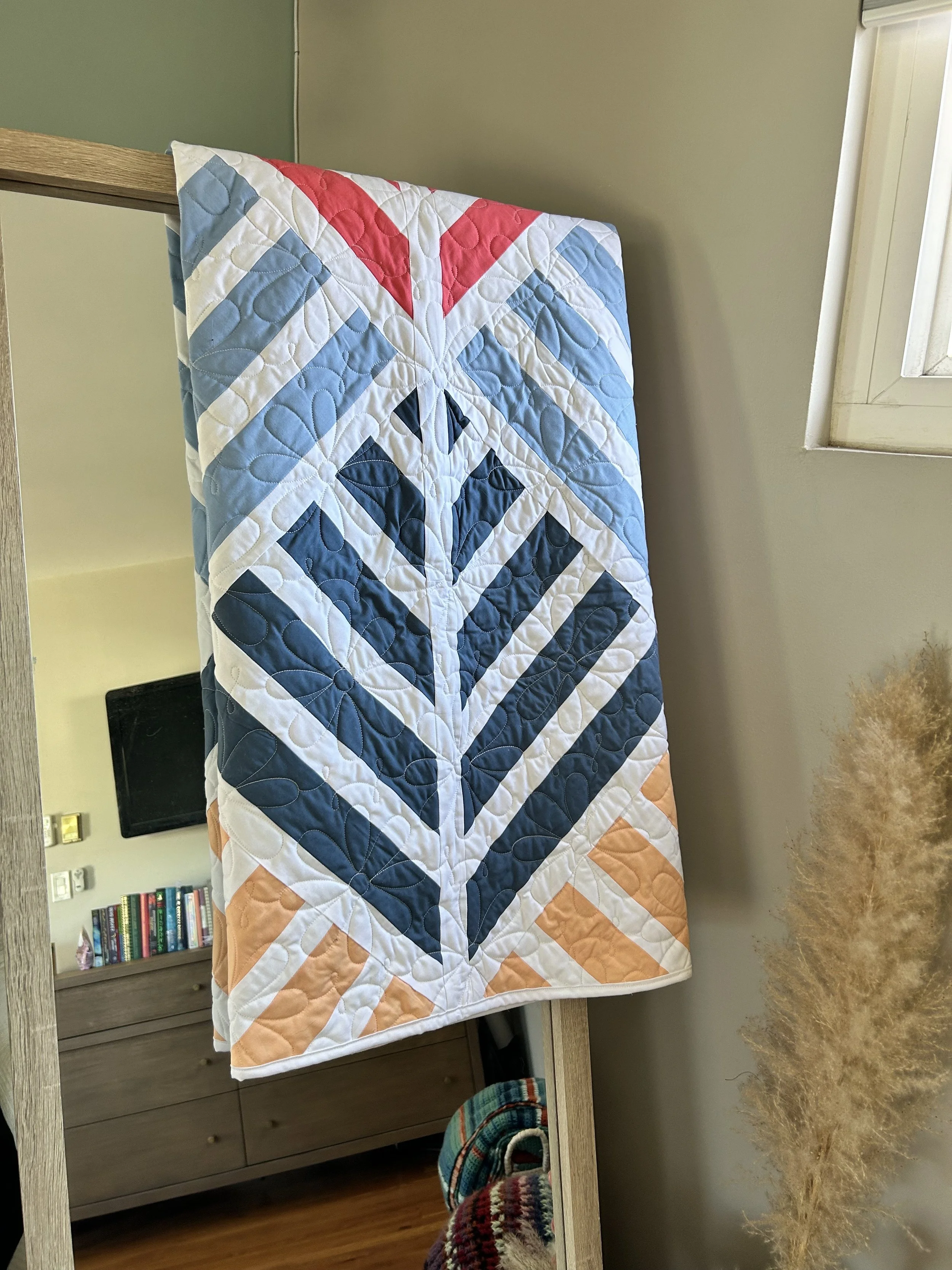 Nettlewood Quilt Pattern is a modern quilt pattern using strip piecing and creative cutting. Rated as an advanced beginner pattern, Nettlewood comes in Throw (52” x 60”) and Bed (104” x 96”) sizing, as well as a special Jelly Roll size. The pattern includes instructions for a multi-colored quilt, as well as a two-toned quilt.